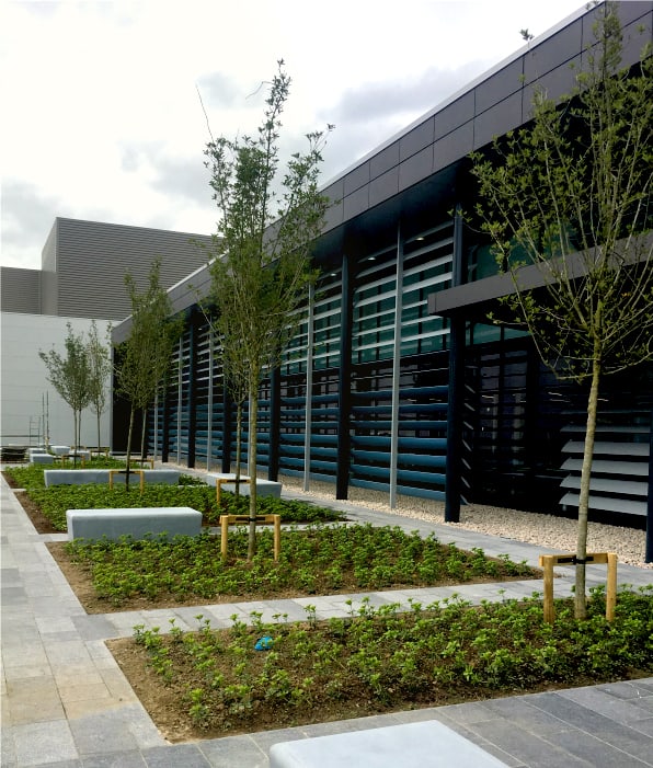 The 227 acre campus site is comprised of three single storey data centre buildings with associated plant, office, delivery and staff facilities. In support of this there is also feature landscaping, trim trails and a security guardhouse.